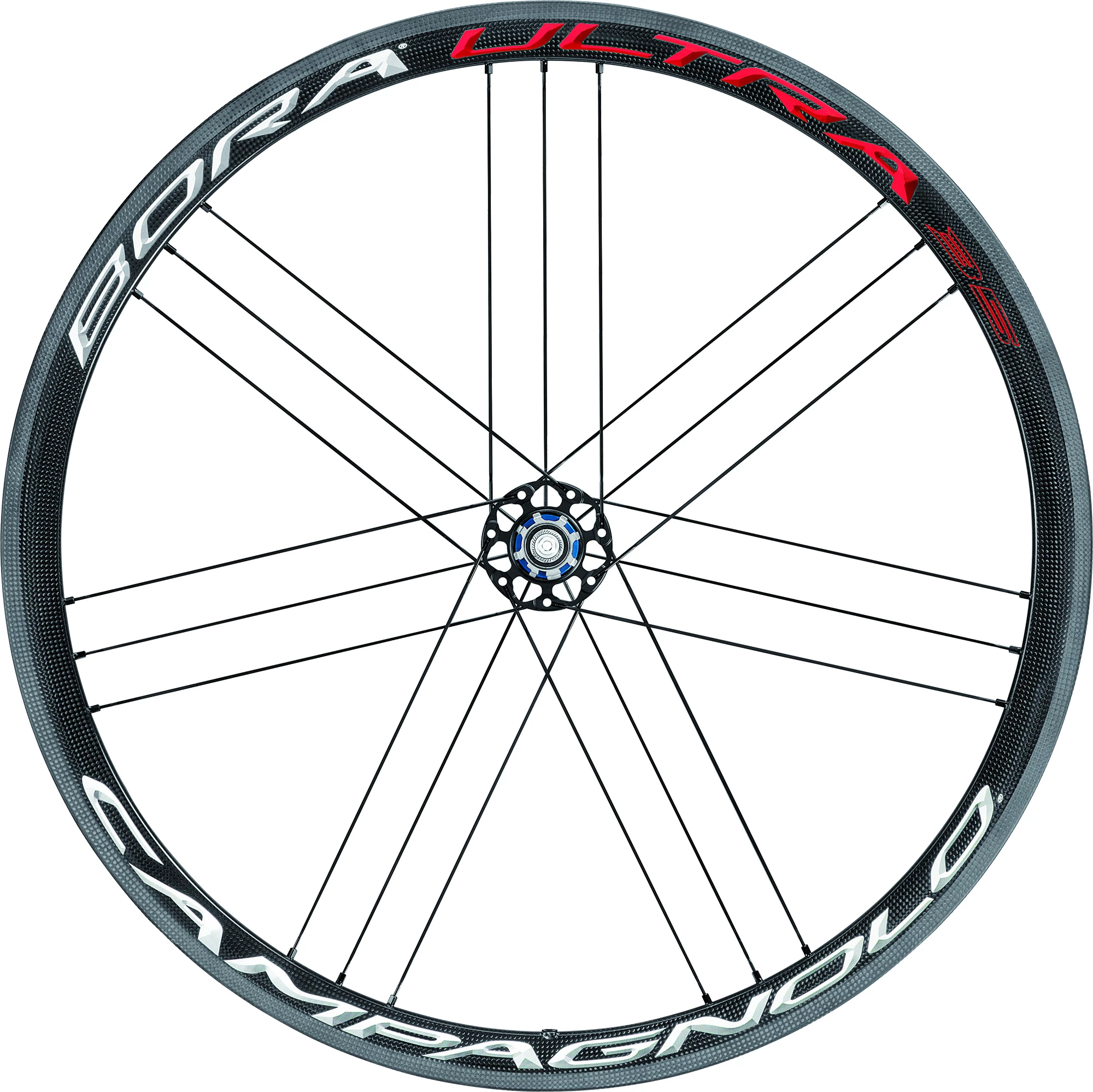 Der Campagnolo Bora Ultra 35 Laufradsatz verfügt über CULT-Keramiklager, die dank Ölschmierung eine extreme Laufruhe und den niedrigsten Reibungskoeffizienten bieten und 9-mal effizienter sind als Standardlager. Außerdem drehen sie sich zu 47 Minuten lang, nachdem sie mit 500 U / min gefahren wurden .