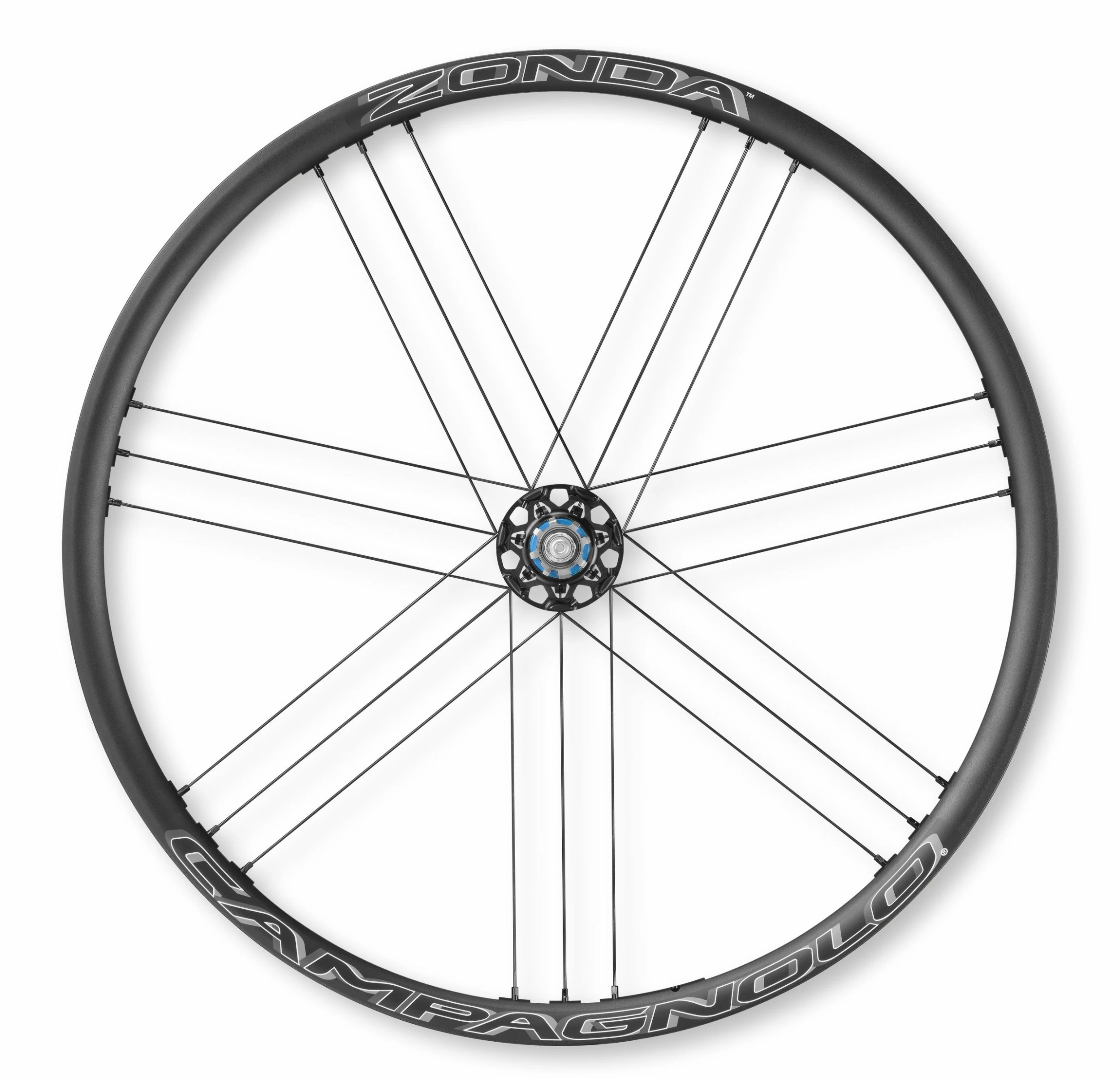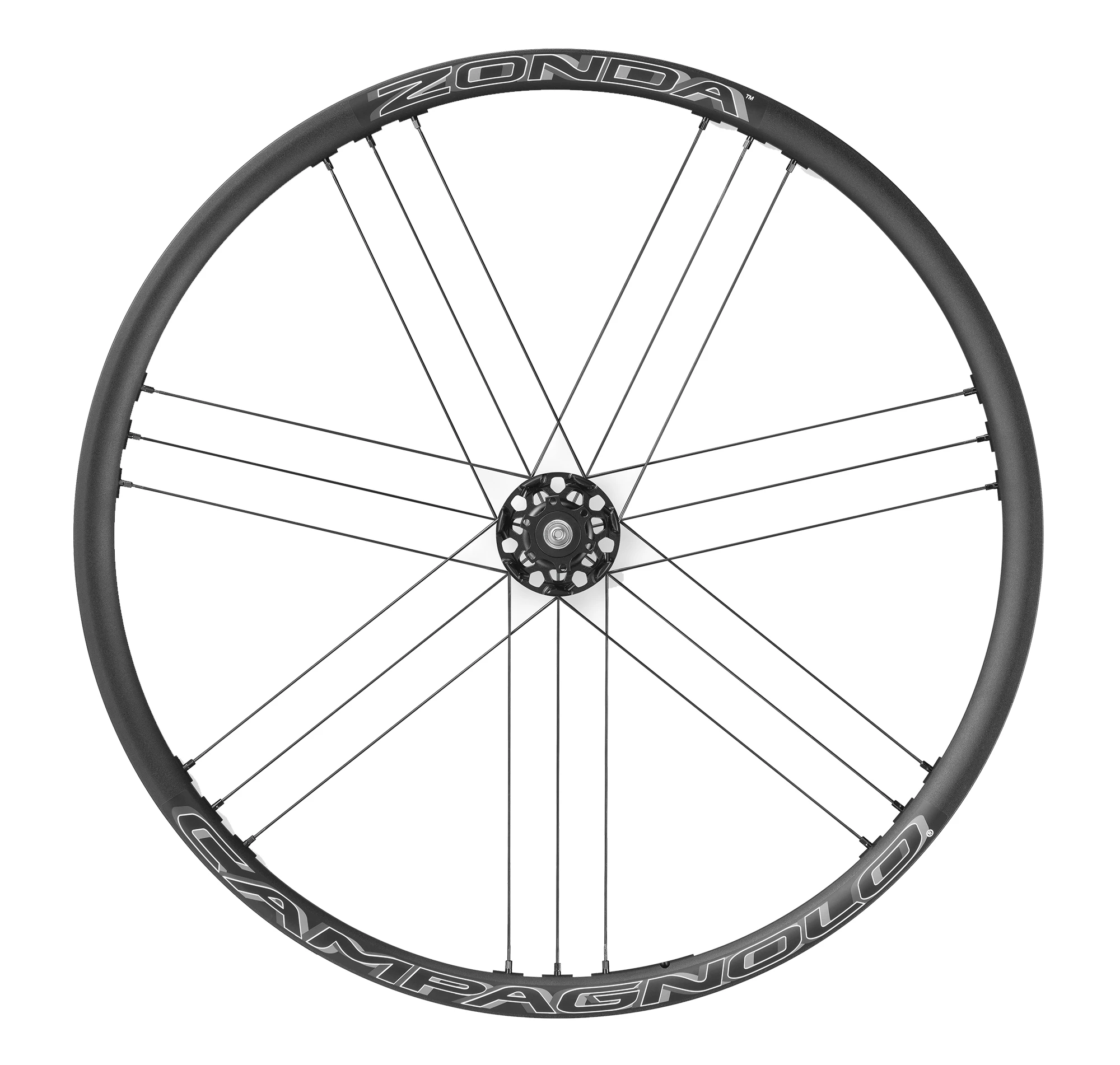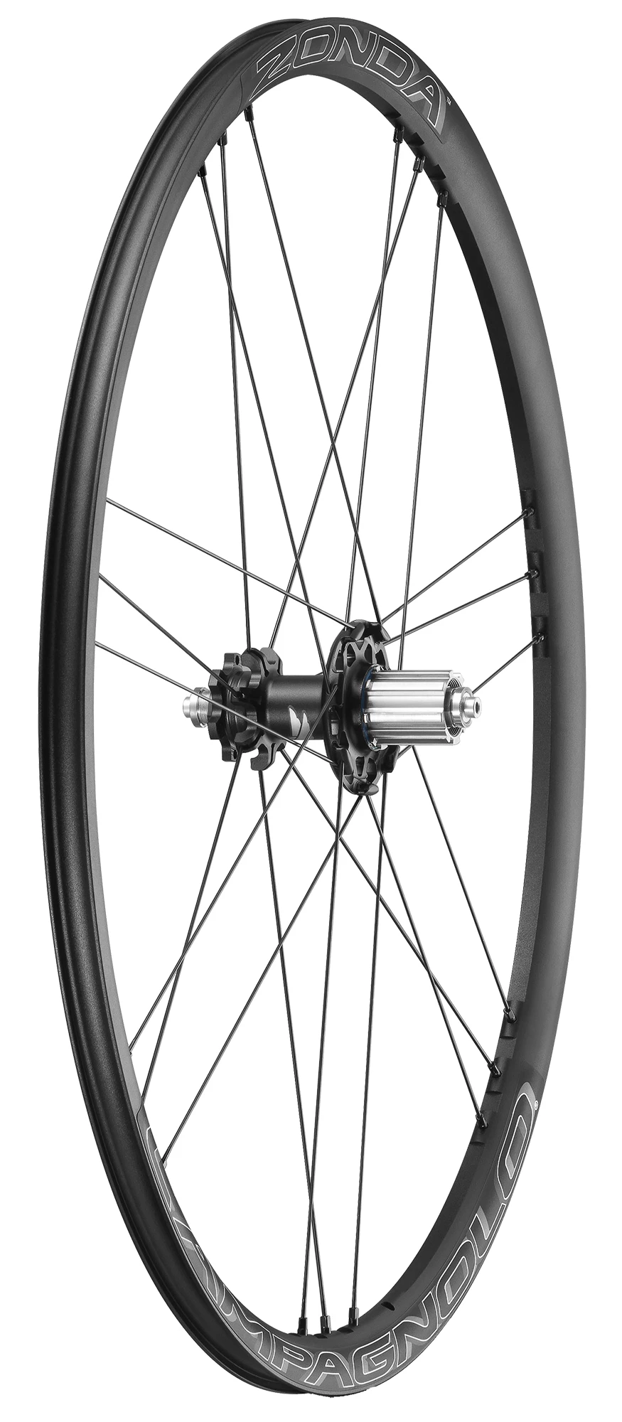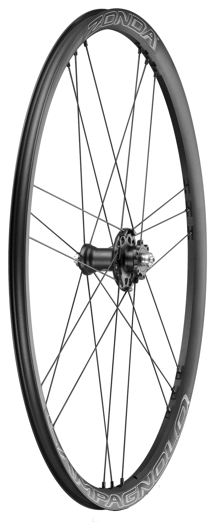 Der für Scheibenbremsen ausgelegte Zonda Laufradsatz verfügt über ein neues, asymmetrisches Felgenprofil mit gefräster Felge, damit das periphere Gewicht der Felge reduziert werden konnte. Das Ergebnis: ein extrem reaktionsfähiges Laufrad. Außerdem machten sich Campagnolo die MoMag Technologie zu Nutze, um eine einheitliche Felge herzustellen, bei der kein Felgenband benötigt wird und durch die das Laufrad mit höherer Speichenspannung laufen kann, wodurch es steifer und reaktionsfähiger ist.