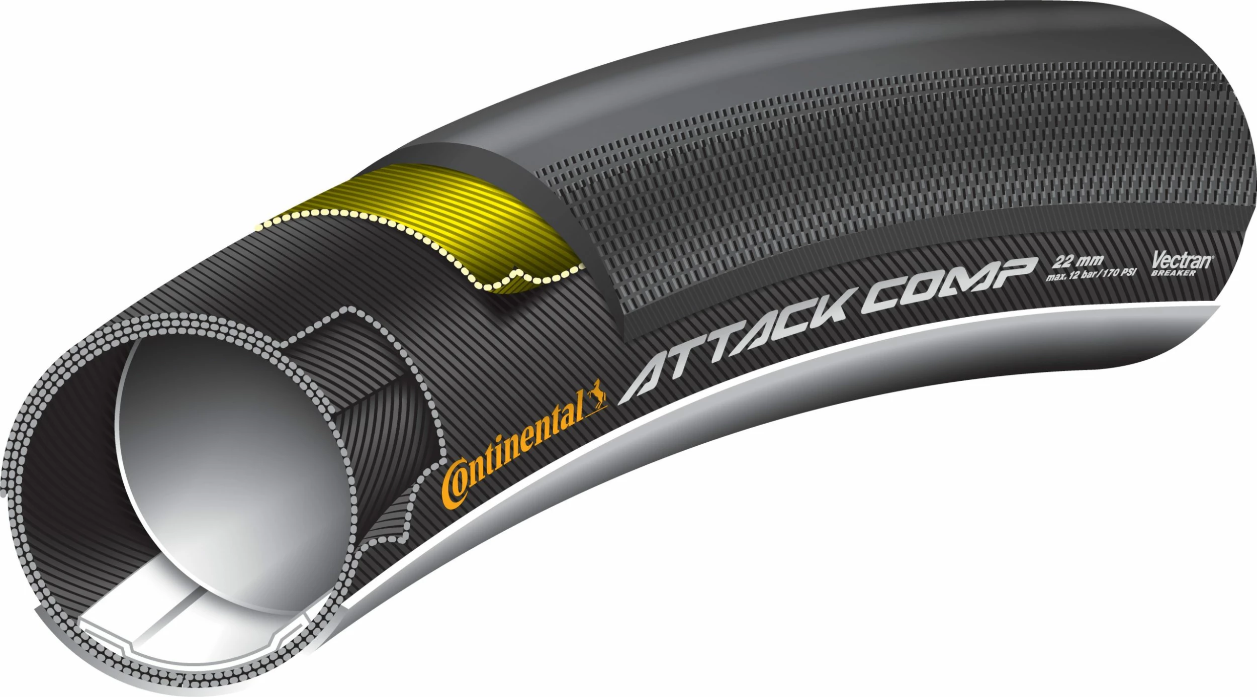 Der schmalere Vorderreifen (22 mm) garantiert verringerten Windwiderstand und ein besseres Handling. Die Laufflächenmischung besitzt eine optimierte Haftung, um besonders in nassen Kurven für den notwendigen Halt zu sorgen. Der breite Hinterradreifen (24 mm) bietet eine bessere Bodenhaftung dank größerer Kontaktfläche und gleichzeitig mehr Komfort. Dank der schnell rollenden, optimierten Laufflächenmischung und des größeren Kontaktbereichs am Hinterreifen wird die Abnutzung reduziert. Das Ergebnis ist ein bahnbrechendes Vorder- und Hinterreifensystem für Rennradrennen, das sich auch an Conti’s GP Attack und Force Reifen/Schläuchen finden lässt.