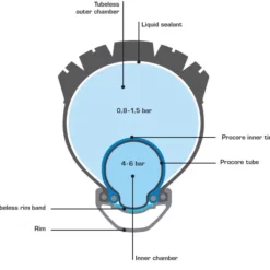 Ein superleichter Butylschlauch, selbst leichter als Latex, aber nicht porös, was ein tägliches Aufpumpen unnötig macht. Der Schlauch lässt sich auch mit einem normalen Pannenreparaturset flicken.