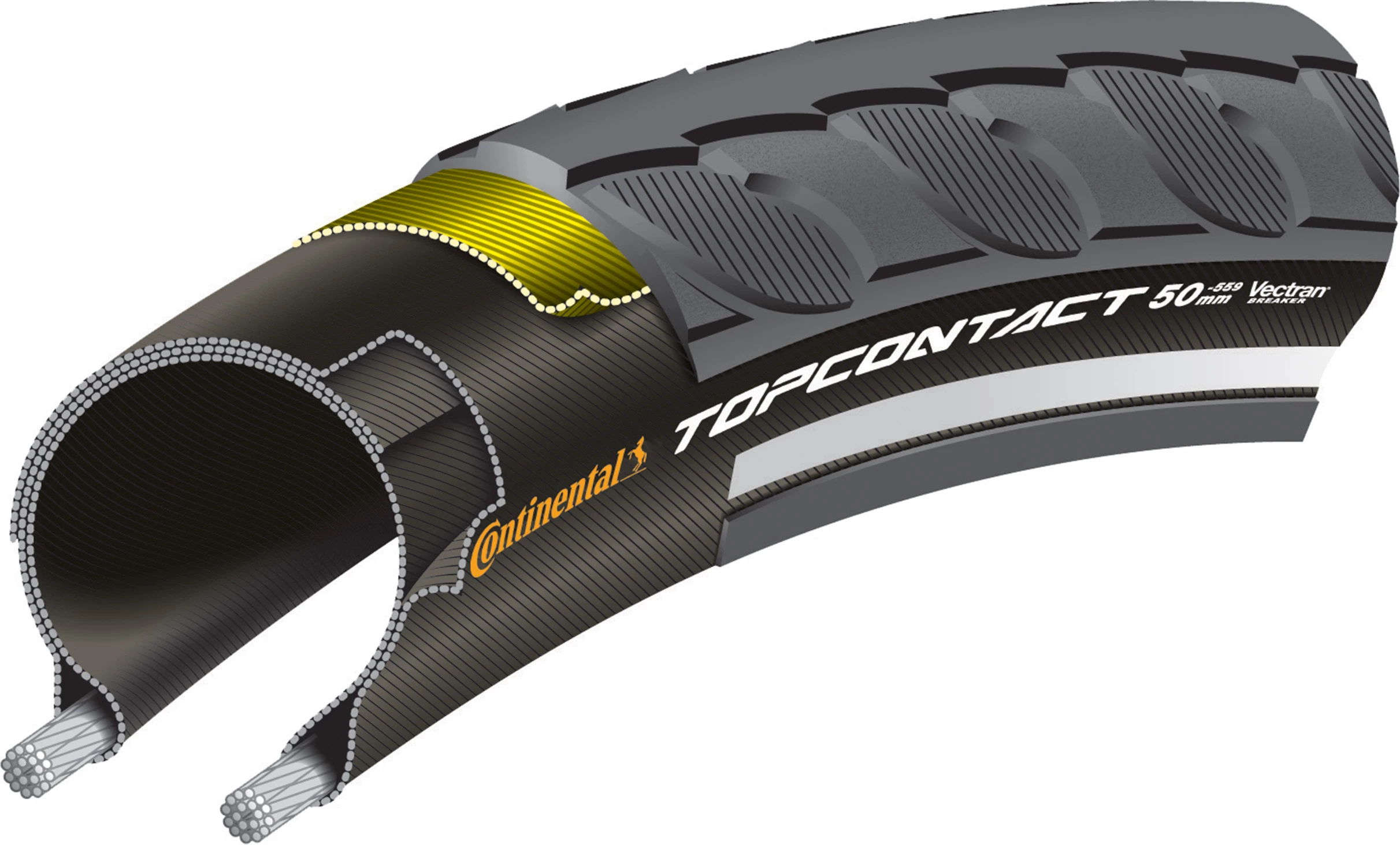 Vectran Schützgürtel sorgen dank hochmoderner Polymere in dem Gummi-Verbundstoff für den besten und leichtesten Pannenschutz, den es für Fahrräder momentan gibt. Genau wie seine Vorgänger ist er dank neuer Materialien und Konstruktionsmerkmale sowie der überwiegend deutschen Produktionsqualität seiner Zeit voraus, um den Top Contact von anderen Tourenreifen abzuheben.