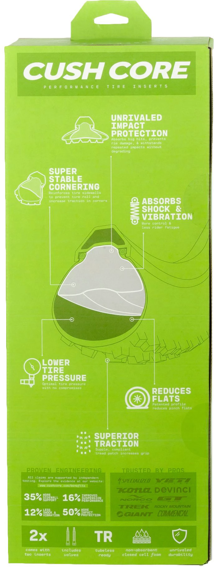 CushCore improves suspension performance by 16% and reduces impact force from big hits by 50%. Send it with total confidence.