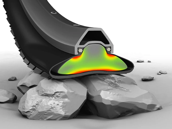 CushCore responds differently depending on the tyre load and scenario. The more the tyre flexes, the more damping it provides.