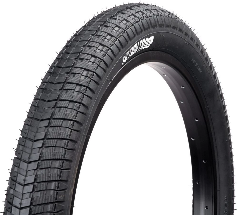 Letting you trick out in the park, this semi-aggressively designed BMX tyre is rugged and robust for absorbing big landings and taking the abuse of modern freestyle riding. Measuring a 62mm width, it is ideally sized for fun and furious riding.
