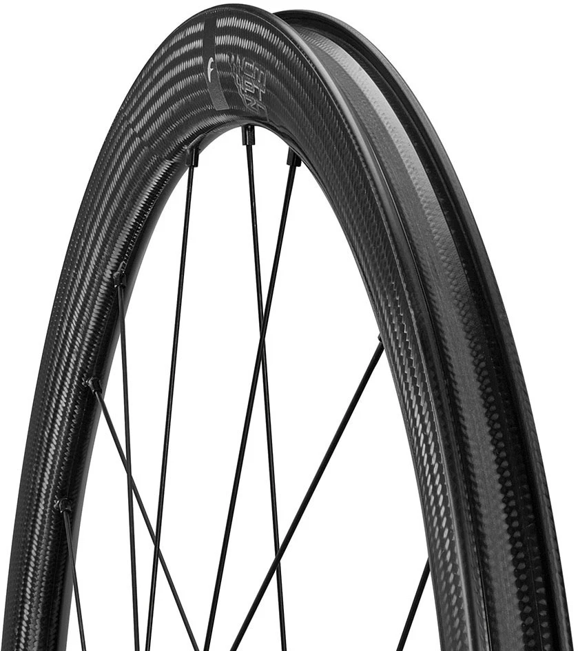 Dieser Rennrad-Laufradsatz ist auf Geschwindigkeit ausgelegt und verfügt über zwei hochwertige Vollcarbon-Felgen mit einem „Twill“-Carbon-Finish, wodurch er den Anforderungen des modernen Rennradsports mehr als gewachsen ist. Die Carbonfelgenkonstruktion bietet außerdem erhöhte Festigkeit, verbesserten Rollwiderstand und ein insgesamt geringeres Gewicht auf Ihrer Fahrt, sodass Sie in der Ebene von leichterem Klettern und schnelleren Sprints profitieren können.