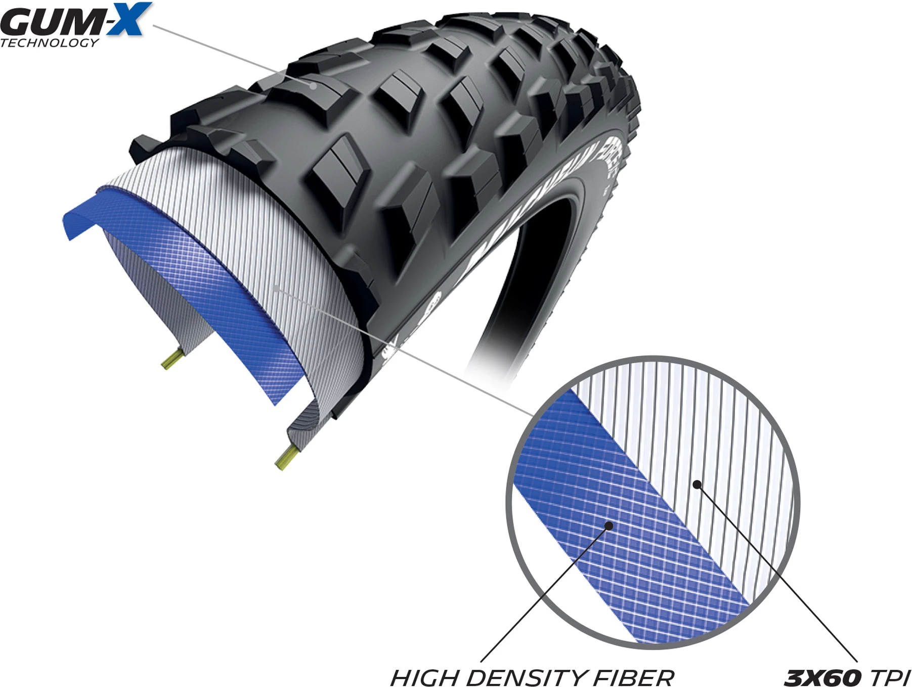 Dieser Reifen bietet dank der Gum-X-Technologie und dem MICHELIN Force XC2 Racing Line-Profilmuster hervorragende Rolleffizienz und Kontrolle unter allen Fahrbedingungen. Dank der 3×60-TPI-Karkasse mit Pannenschutz durch die hochdichte Faserschicht unter der Lauffläche ist er außerdem leicht und widerstandsfähig. Dieser Reifen wurde entwickelt, um zuverlässig und schnell zu rollen und gleichzeitig sicherzustellen, dass Sie bei gemischten Fahrbedingungen ausreichend Grip haben.