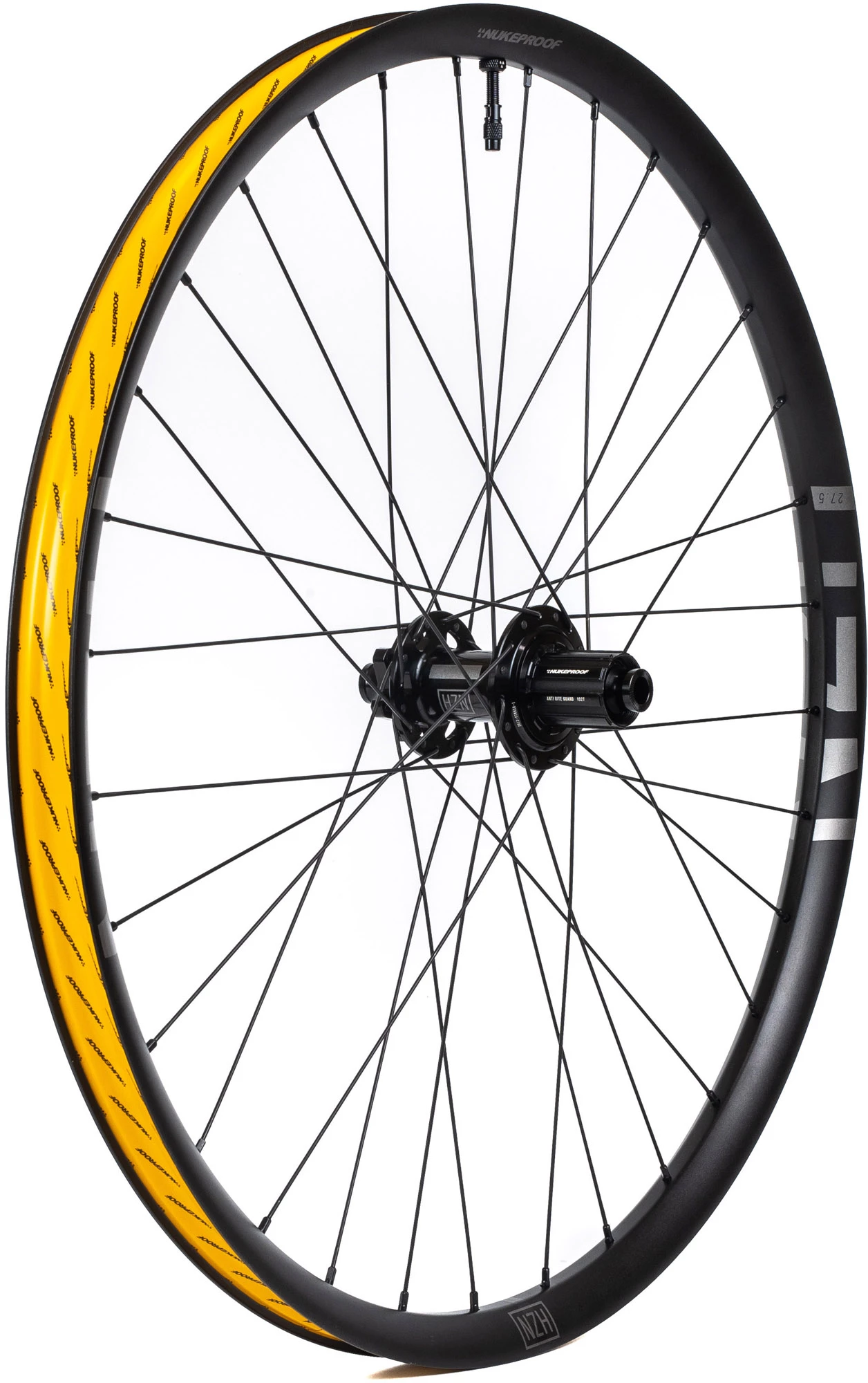 Die Laufräder sind mit einem Schlauchventil versehen, sodass Sie nur Ihren Reifen montieren und Dichtmittel hinzufügen müssen. Das mitgelieferte schlauchlose Ventil ist das neue Nukeproof Horizon-Ventil, das mit Nukeproof ARD und anderen Reifeneinsätzen sowie der Kappe mit eingebautem Ventilkernentferner kompatibel ist.