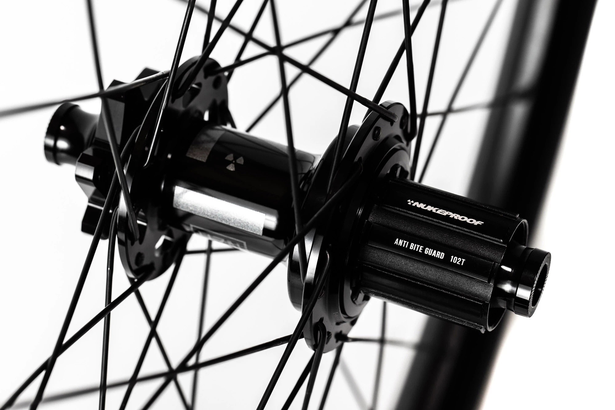 Nach umfangreichen Tests mit unterschiedlichen Lagermarken entschied sich Nukeproof für die Verwendung von Enduro ABEC 5-Lagern in diesem Hinterrad. Diese Lager haben den Dichtungstyp „LLU / LLB“, bei dem zwei Lippen verwendet werden, die einen leichten Kontakt in einer Nut herstellen, um ein Labyrinth zu schaffen, in das Wasser oder Schmutz nur schwer eindringen können. LLU-Dichtungen sind ähnlich, nur der Anpressdruck oder die Presspassung sind größer, um besser abzudichten. Enduro-Lager haben auf beiden Seiten eine Fettfüllung von 80%, während die meisten anderen Lager auf einer Seite eine Fettfüllung von 35% haben. Dies bietet eine vollständige Abdeckung, sodass keine trockenen Bereiche vorhanden sind und Metall-auf-Metall-Kontakt oder Verschleiß vermieden werden. Dies bedeutet, dass sich die Achse sofort fest anfühlt und nach einigen Fahrten frei wird.