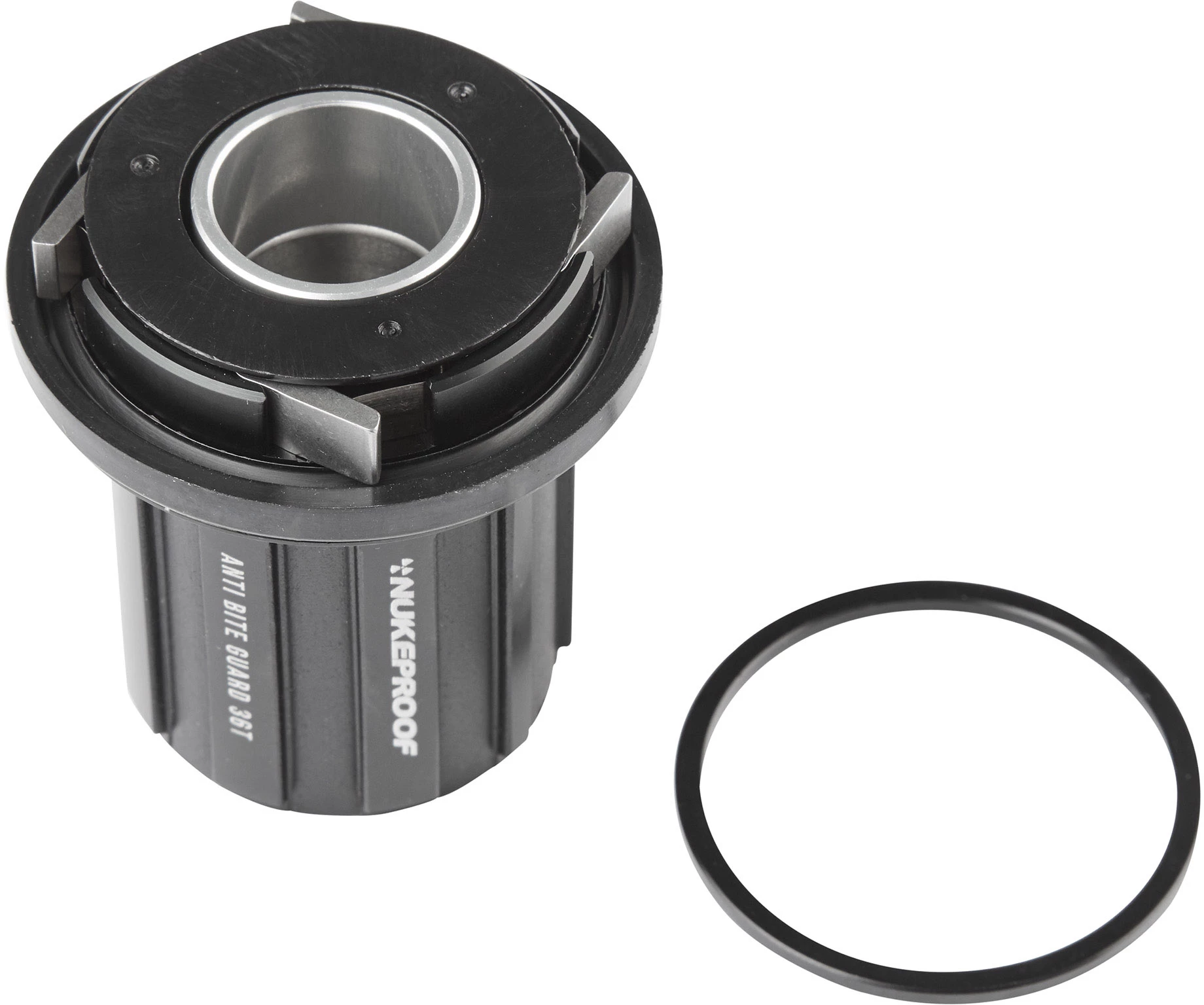 Eine neue Nabendichtung und Buchse wird mit Nukeproof-Freiläufen geliefert. Um eine Beschädigung der Nabendichtung zu vermeiden, drehen Sie den Freilauf nach Belieben gegen den Uhrzeigersinn.