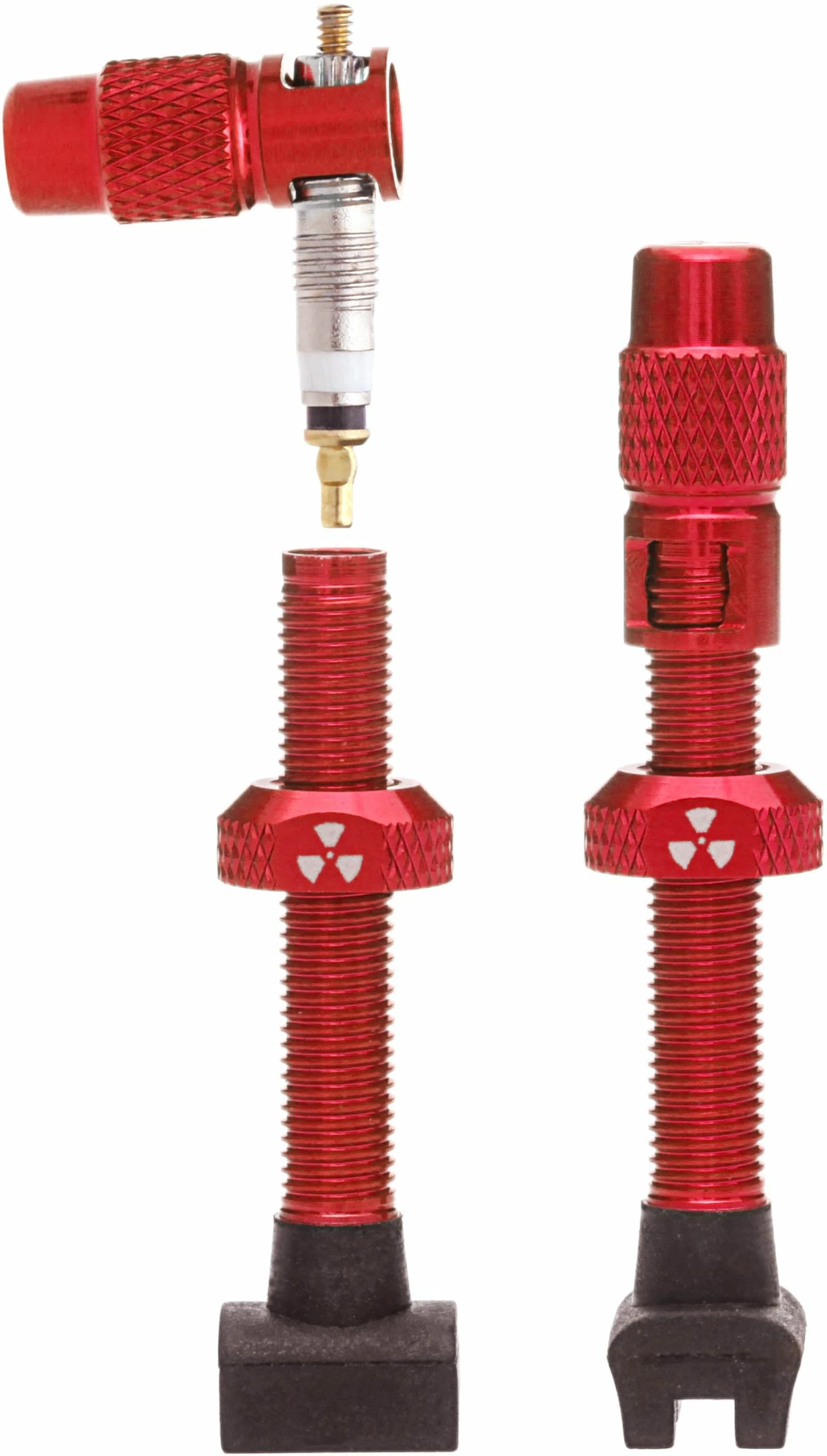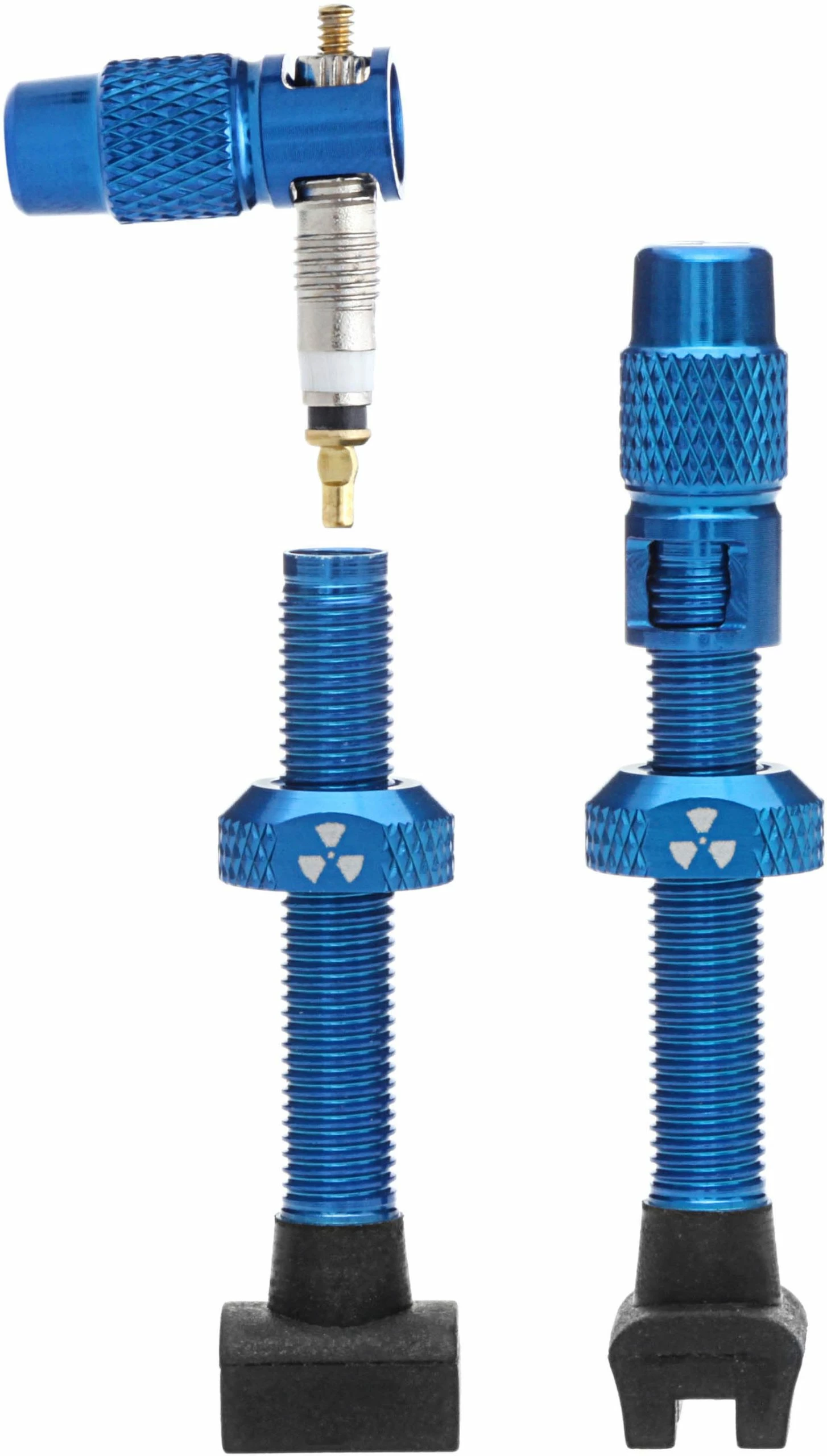 Der angepasste Kopf ermöglicht, dass der Reifeneinsatz oben auf dem Ventil sitzt, wobei die Form des Kopfes ein einfaches Aufpumpen und Entleeren ermöglicht. Jedes Ventil hat einen entfernbaren Kern, der es Ihnen ermöglicht, den maximalen Luftstrom von Ihrer schlauchlosen Pumpe oder CO2-Patrone zu erhalten.