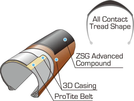 Equipped with a 3D casing and ProTite Belt, this super-protective tyre works hard to stop rips and ruptures from hindering your journey. Shaped with an All Contact tread for top traction and minimal rolling resistance, this pacy Panaracer tyre also features ZSG (Zero Slip Grip) to keep you upright and unrivalled from start to finish.
