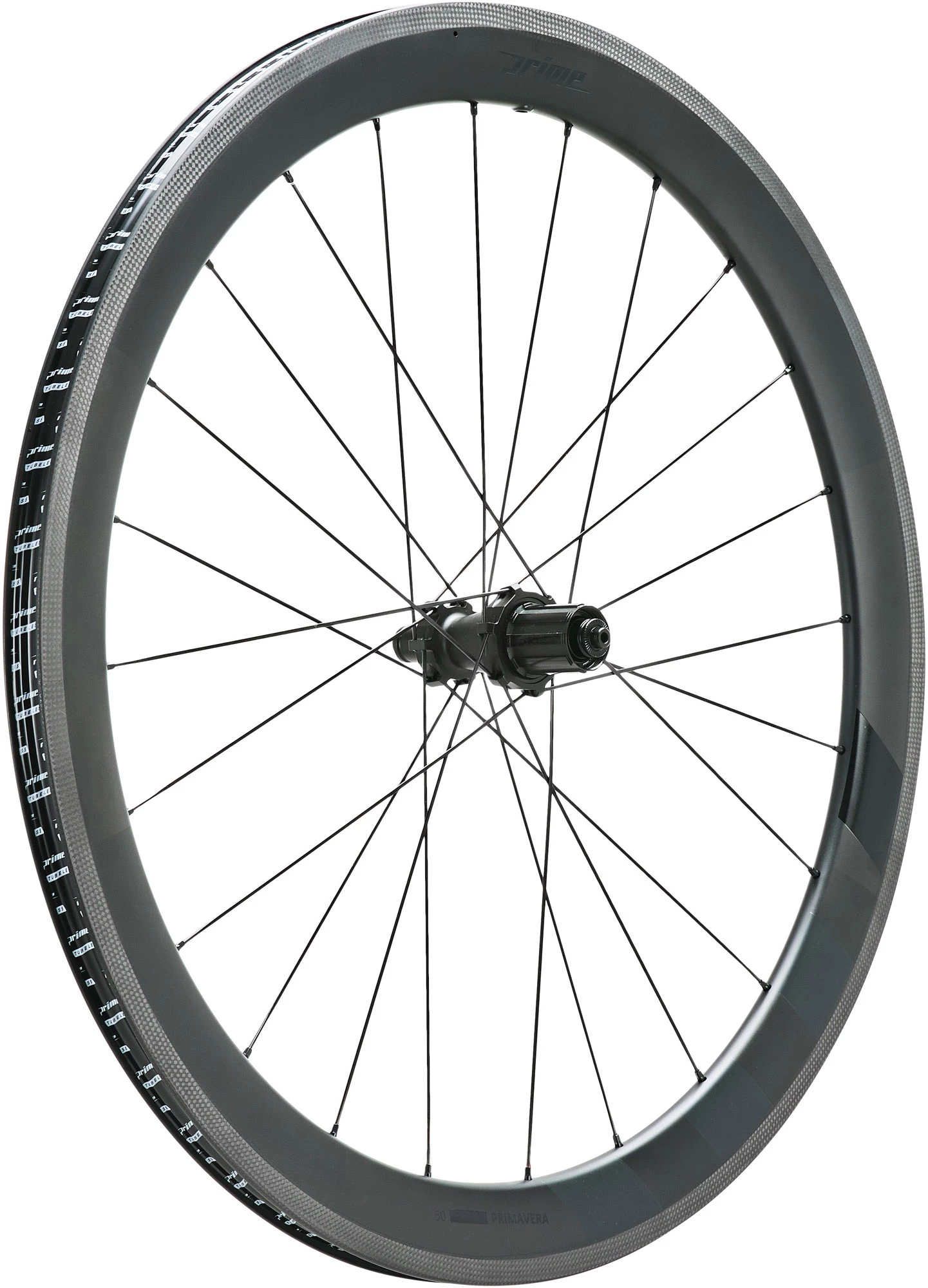 Der Prime Primavera 50 Carbon Laufradsatz von Prime verfügt über ein 50 mm tiefes, aerodynamisches Felgenprofil, um hohe aerodynamische Eigenschaften zu bieten, indem die Menge an Luftverwirbelungen sofort minimiert wird, wenn Luft auf die Speichen trifft. Das etwas breitere Felgenprofil von diesem Primavera 50 sorgt für eine linearere Kontur zwischen Reifen und Felge, wodurch der Rollwiderstand reduziert und eine verbesserte Kontaktfläche für mehr Stabilität in Kurvenlagen erzielt wird.