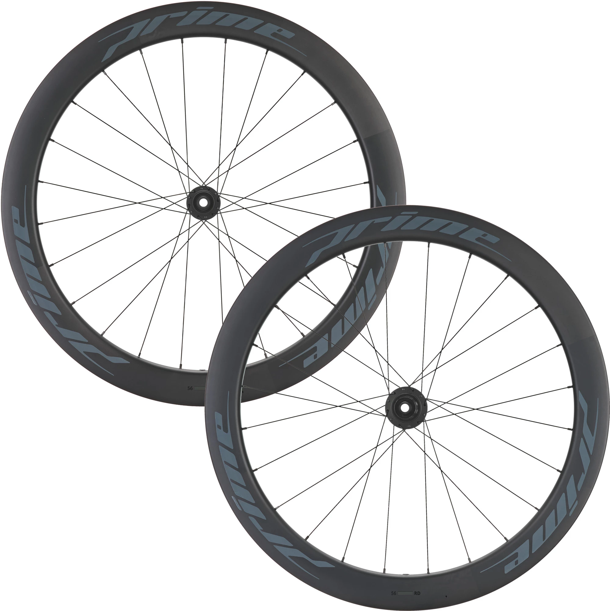 Ganz gleich, ob Sie mit Ihrem örtlichen Straßenverein viele Kilometer zurücklegen oder an einem Zeitfahr- oder Tri-Event teilnehmen, dieser vielseitige Laufradsatz wurde für zuverlässige Leistung entwickelt. Es verfügt über zwei hochwertige unidirektionale (UD) T700-Carbonfaserfelgen, die es ihm ermöglichen, die beste Balance aus Steifigkeit und Haltbarkeit zu bieten und gleichzeitig das Gewicht beeindruckend niedrig zu halten. Prime hat diese Version auch mit einer Felgentiefe von 56 mm ausgestattet, die sanfte Rolleigenschaften mit verbesserter Aerodynamik bietet, wenn Sie durch den Wind schneiden.