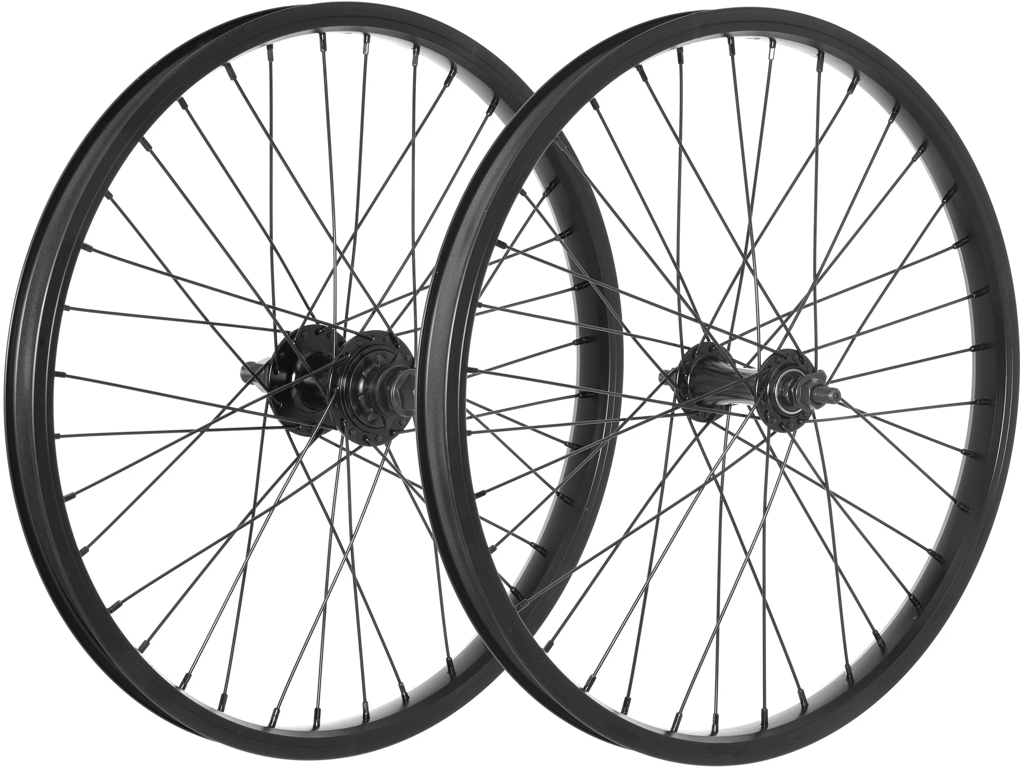 Dieser Laufradsatz bietet ein hervorragendes Preis-Leistungs-Verhältnis und verfügt über 36-Loch Alu Single Skin Felgen, vollständig abgedichtete Naben mit 10 mm Vorderachse und 14 mm Hinterachse sowie einen 9-Zahn-Antrieb.