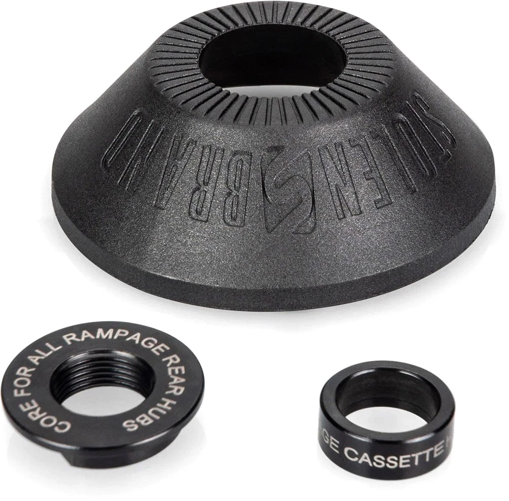 This option fits Rampage Freecoaster and Cassette rear hubs (including complete bike). Mounts replacing the lock nut. Fits 14mm axles, 68mm diameter.