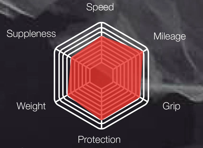 Darüber hinaus ist der Reifen mit einem ausgezeichneten Pannenschutz ausgestattet, wodurch er für lange Wettkämpfe oder Trainingsfahrten sowohl bei gutem, als auch schlechtem Wetter bestens geeignet ist.