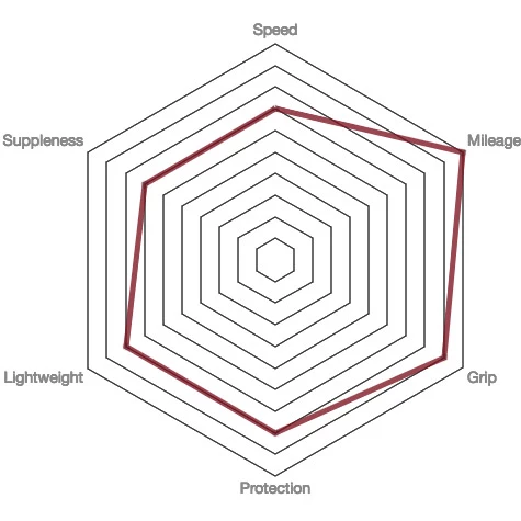 Die 3C-Compound-Konstruktion verfügt über drei einzigartige Gummimischungen, die genau dort eingesetzt werden, wo sie die Rollgeschwindigkeit, den Grip und die Zuverlässigkeit am meisten verbessern. Dieser Reifen, der Vertrauen schenkt, verfügt über einen glatten Mittelabschnitt für außergewöhnliche Abrolleffizienz und einen einzigartigen Allwetterprofilabschnitt an den Außenkanten. Das heißt, er bietet schnelles Abrollen und hohe Traktion und ist gleichzeitig pannensicher.